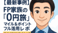 【9】旅行 【最新事例】FP家族の「0円旅」マイル&ポイントフル活用レポ【実績画像付き】 【実績画像あり】家族4人で海外旅行を実質0円にしたFP家族の最新レポート!ANAマイルや楽天ポイントをフル活用した具体的な収支、貯め方のコツ、注意点まで徹底解説。家計にも優しい“旅行の新常識”をあなたも実践してみませんか? 2025.09.26 【9】旅行マイル・ポイント活用法子連れ旅行